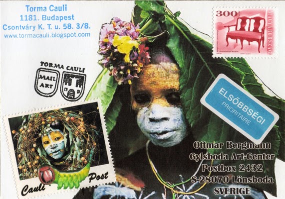 Újból előkerültek az afrikai virágos gyerekek, Ottmar mindig nagyon színes lapokat küld, ez késztetett rá, hogy megcsináljam ezt a mail artot.